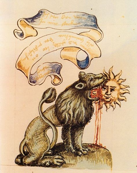 „Es gibt nur diesen Grünen Löwen, der die sieben unlösbaren Siegel der sieben metallischen Geister schließt und öffnet, und der die Körper solange quält, bis er sie nicht ganz, auf Kosten einer langen und beharrlichen Geduld des Künstlers, vervollkommnet hat.